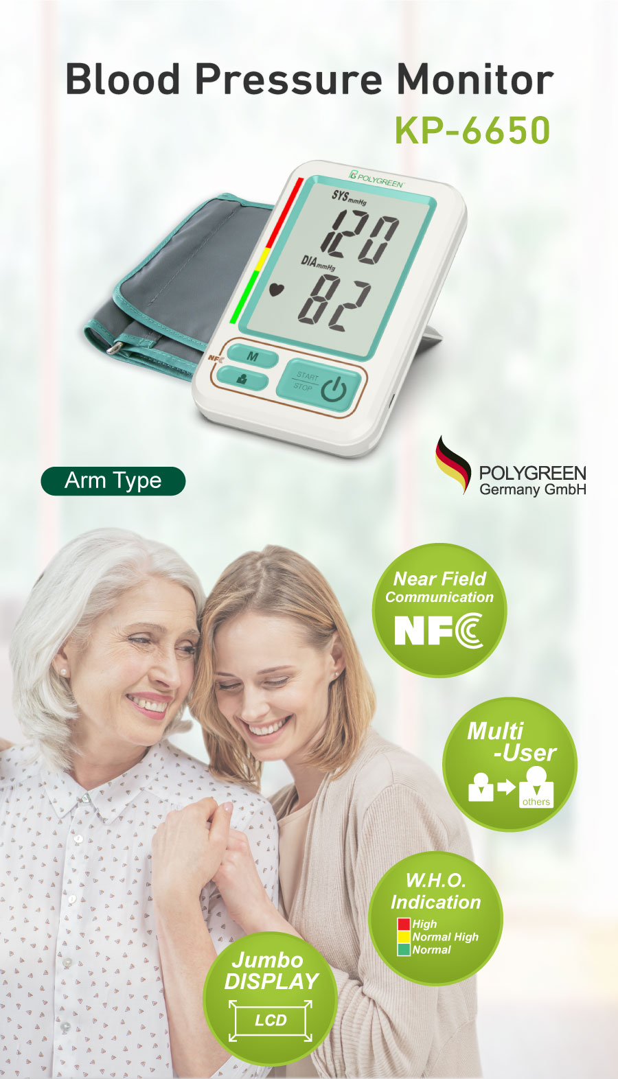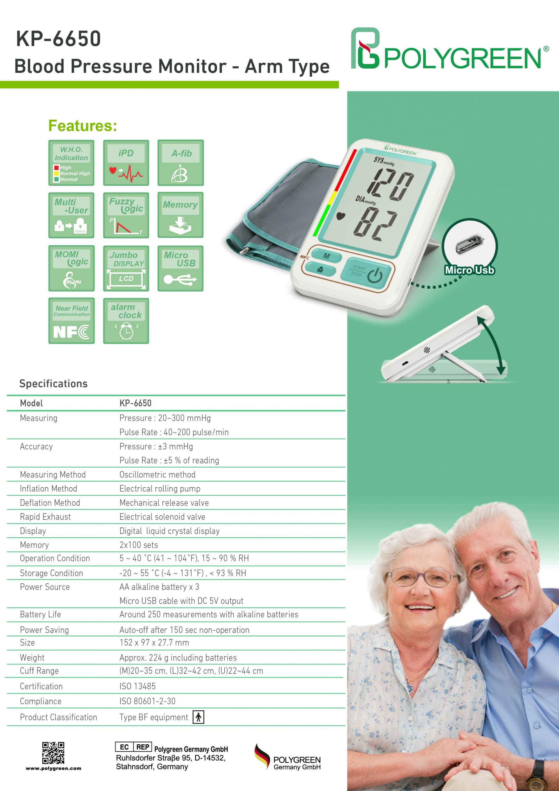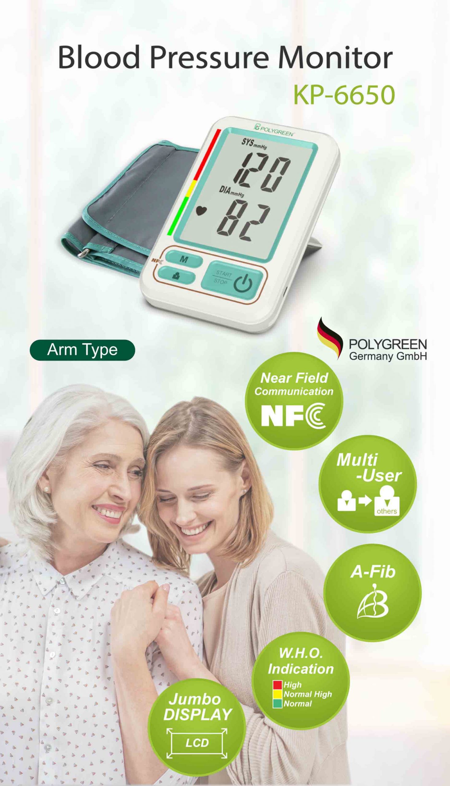 KP-6650 Blood Pressure Monitor - Arm Type - POLYGREEN